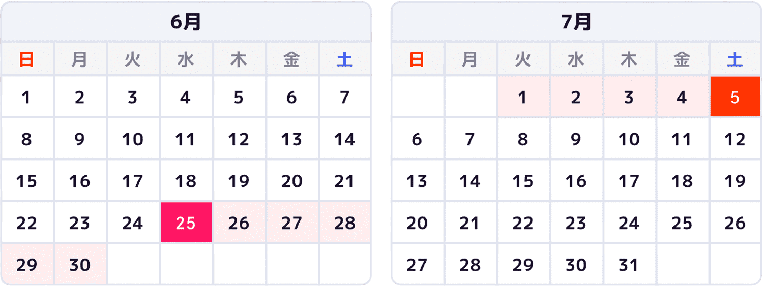 例)次回発送予定日が7/5(土)の場合