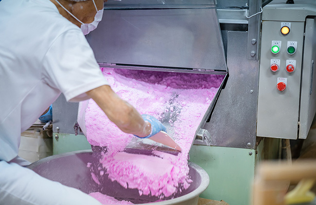 20年をともにした機械で形を整え、レインボーラムネの食感の決め手ともいえる乾燥工程を経て完成です。
