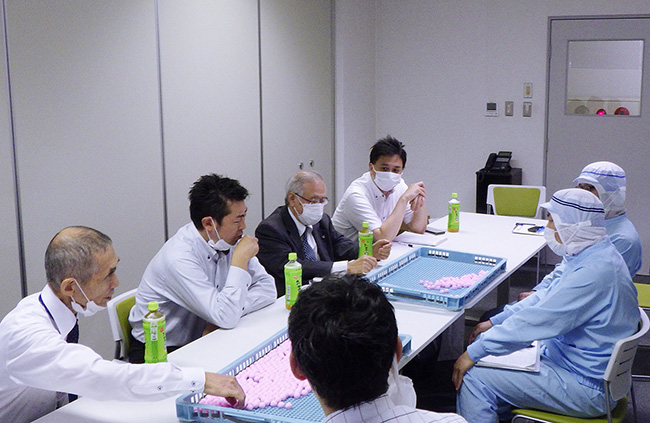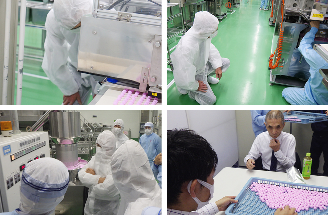 口溶けを再現するために、まずはUHA味覚糖 開発担当者が直接訪問し、イコマ製菓本舗の技術と環境を徹底的に研究しました。