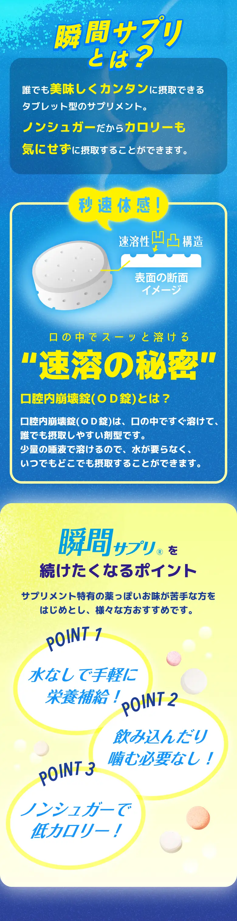 いきます。いつでもどこでも瞬時に摂取することができ、容易に溶けるため、幅広い年齢層の 方に おすすめの製品です。