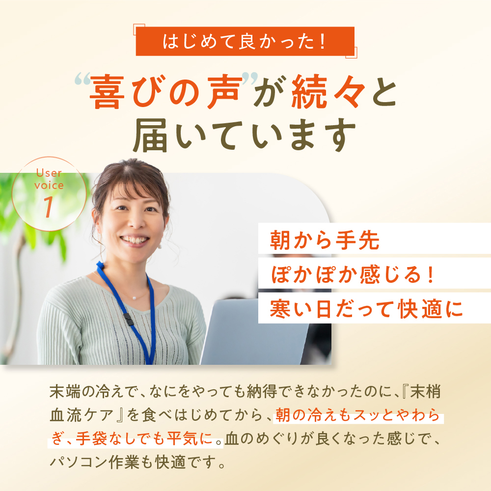 本品にはモノグルコシルヘスペリジンが含まれます。モノグルコシルヘスペリジンには、冷えにより低下した血流(末梢血流)を改善し、体温(末梢体温)を保つ機能があることが報告されています。