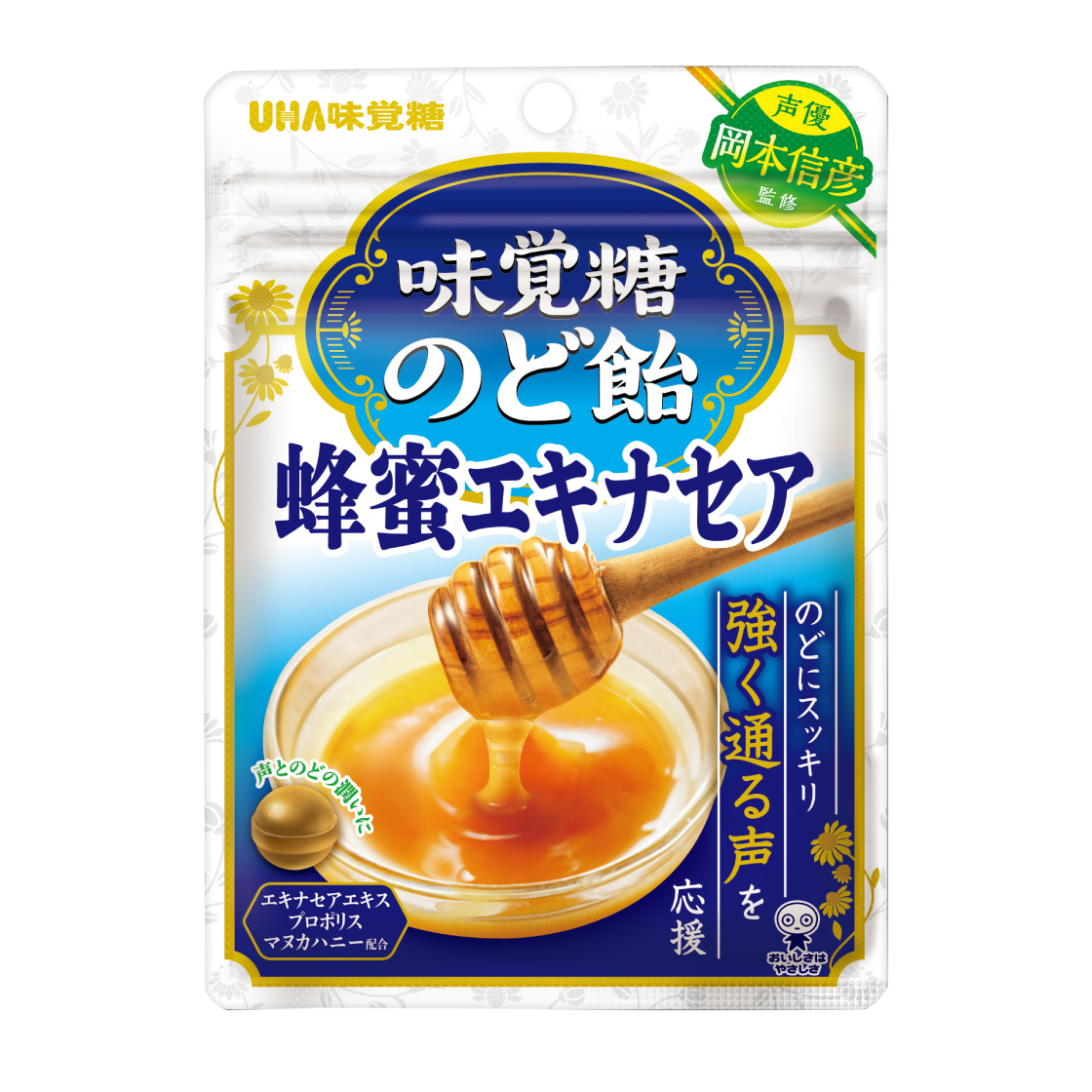 岡本信彦さん監修の下、蜂蜜とエキナセアをいれ、美味しく食べやすいのど飴ができました。