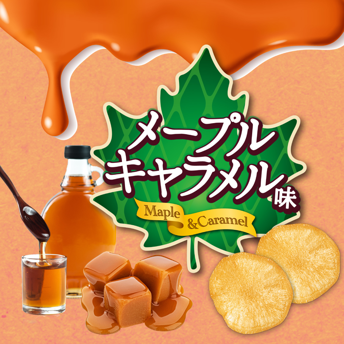 メープルシーズニングとキャラメルフレーバーをまとった、プレーン・塩バターに次ぐ新フレーバーです。