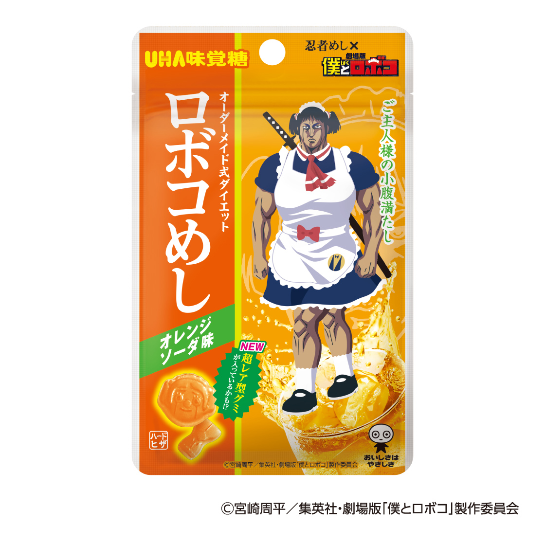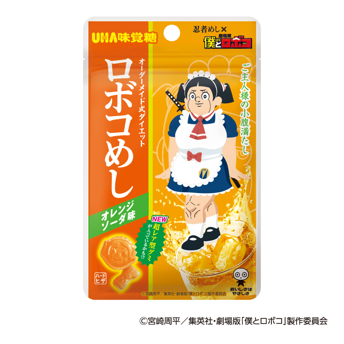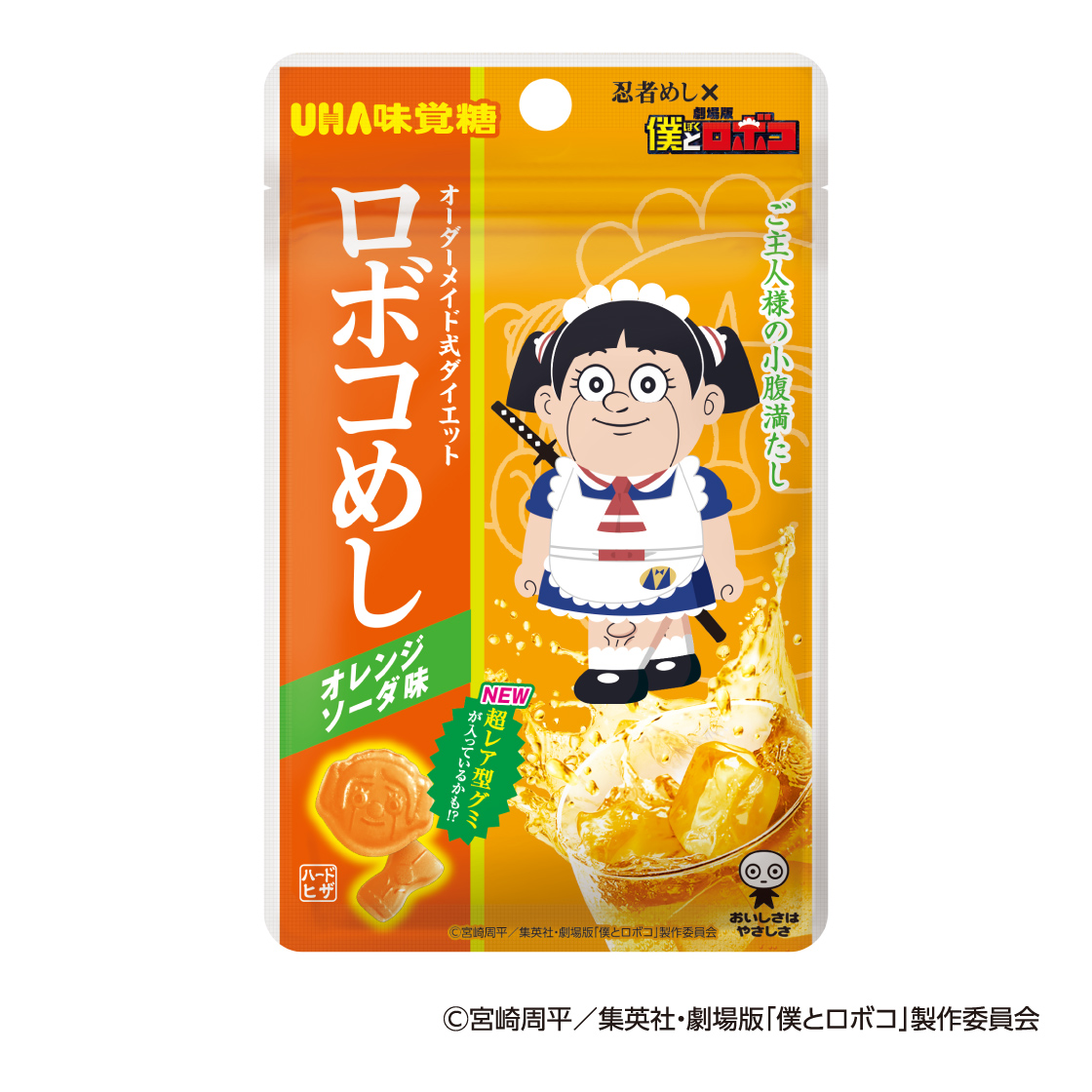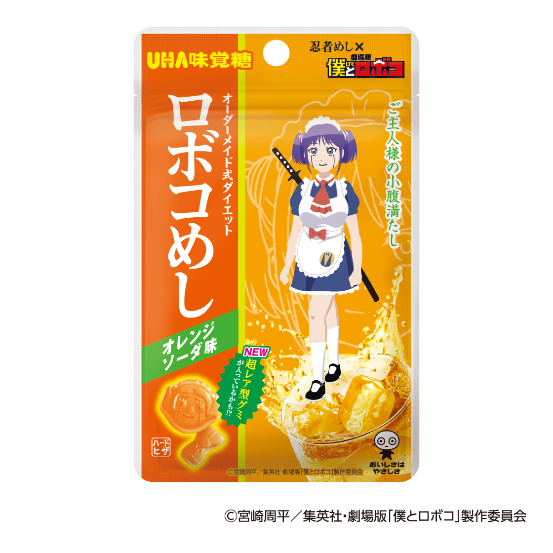 作中に頻繁に登場するロボコたちの愛用ドリンクをイメージしたオレンジソーダ味に仕上げております。