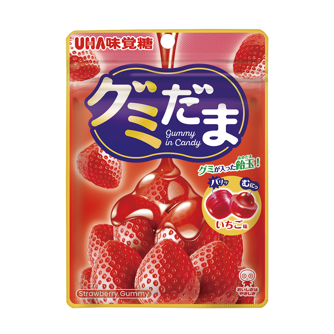外側のキャンディは濃厚ないちごの香りが広がる味わい。中のグミはほどよい酸味を持たせることで、一口で異なるいちごの味わいをお楽しみいただけます。