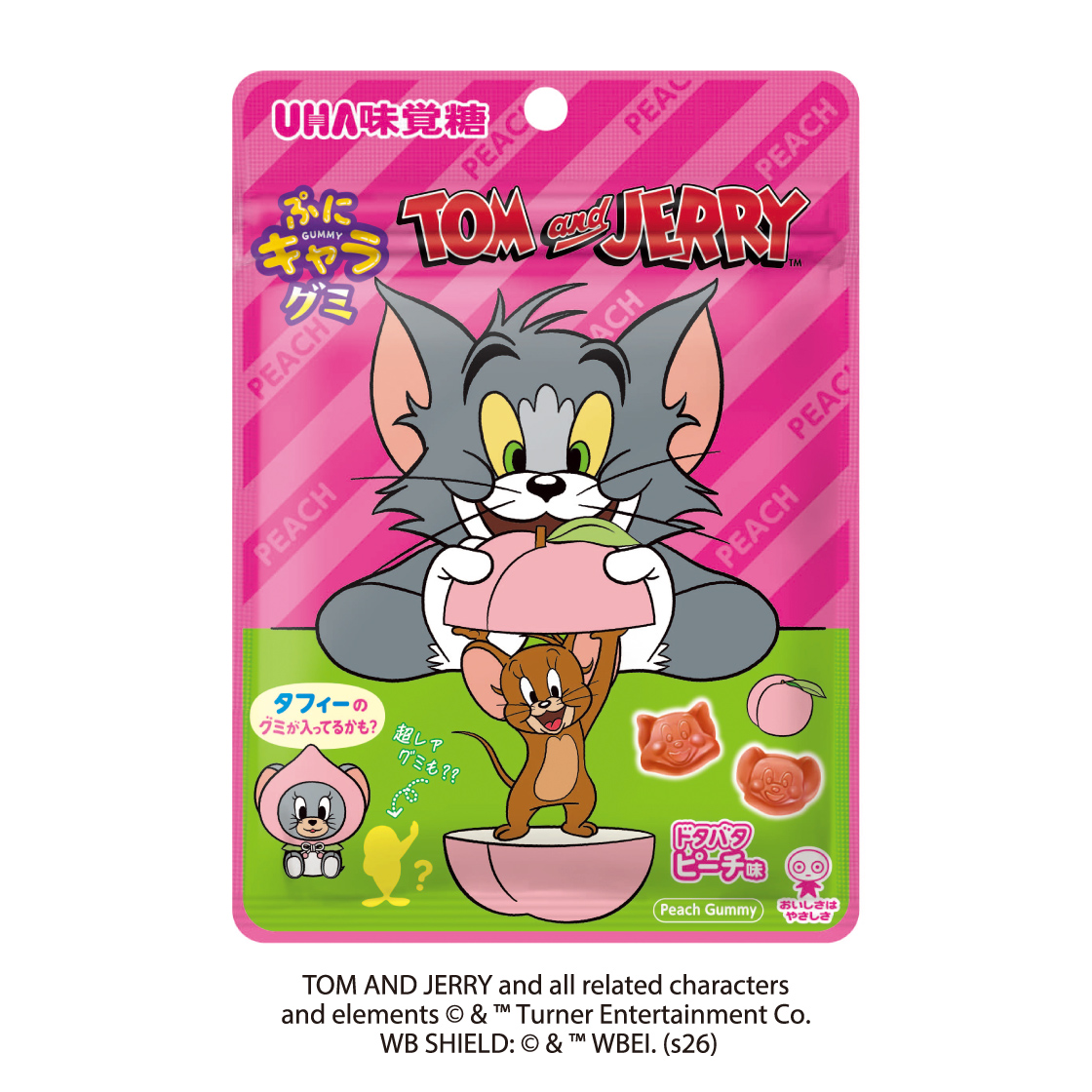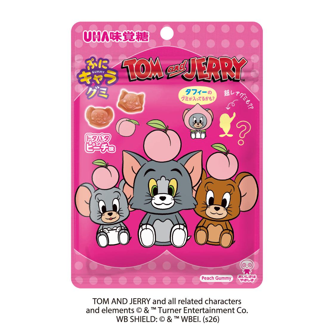 水飴(国内製造)、砂糖、果糖ぶどう糖液糖、ゼラチン、濃縮果汁(ピーチ、りんご)/酸味料、香料、光沢剤、着色料(ニンジンエキス、クランベリーエキス)、(一部にもも・りんご・ゼラチンを含む)