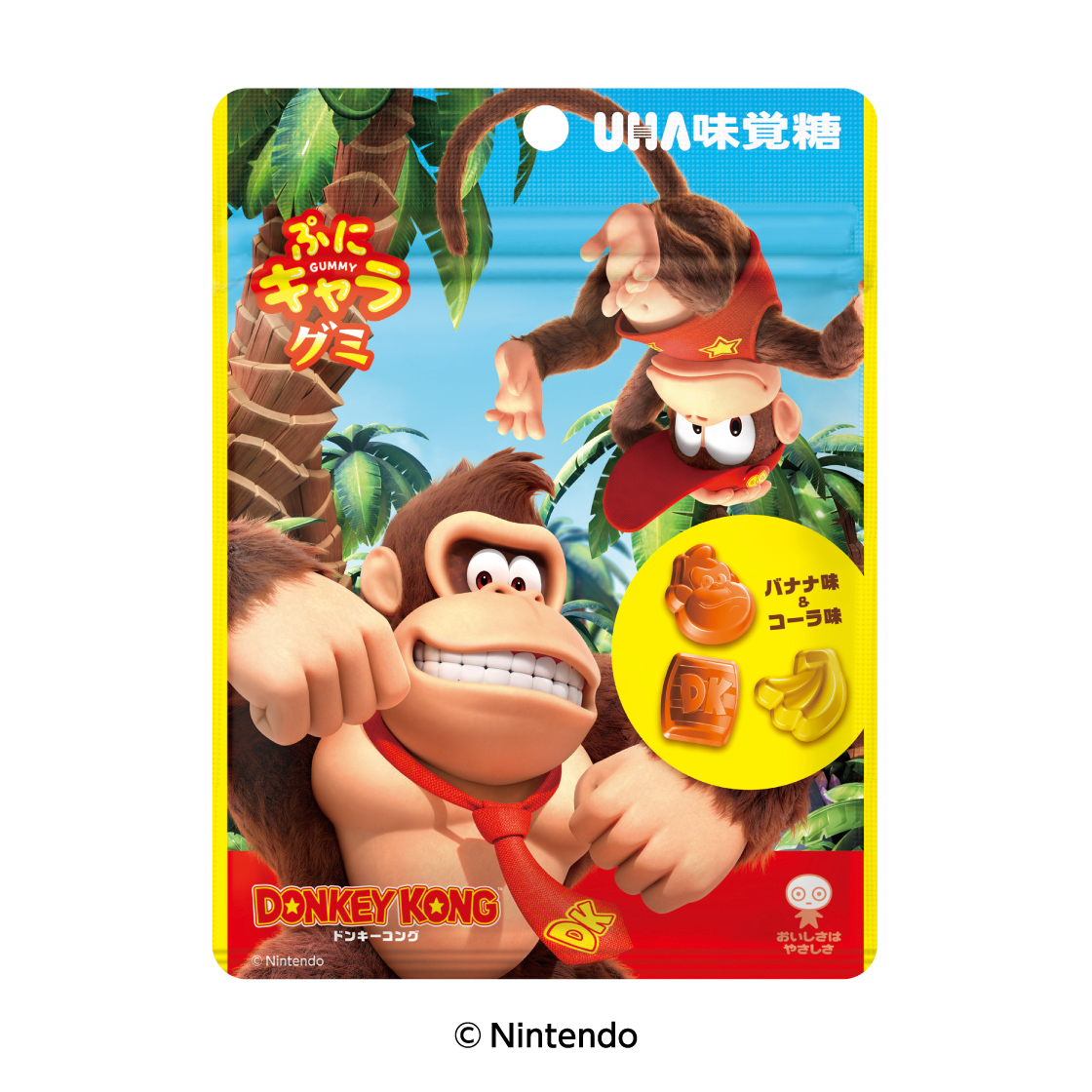 ドンキーコングの顔型、ゲームでおなじみのタル型とバナナ型の全3種の形のグミです。