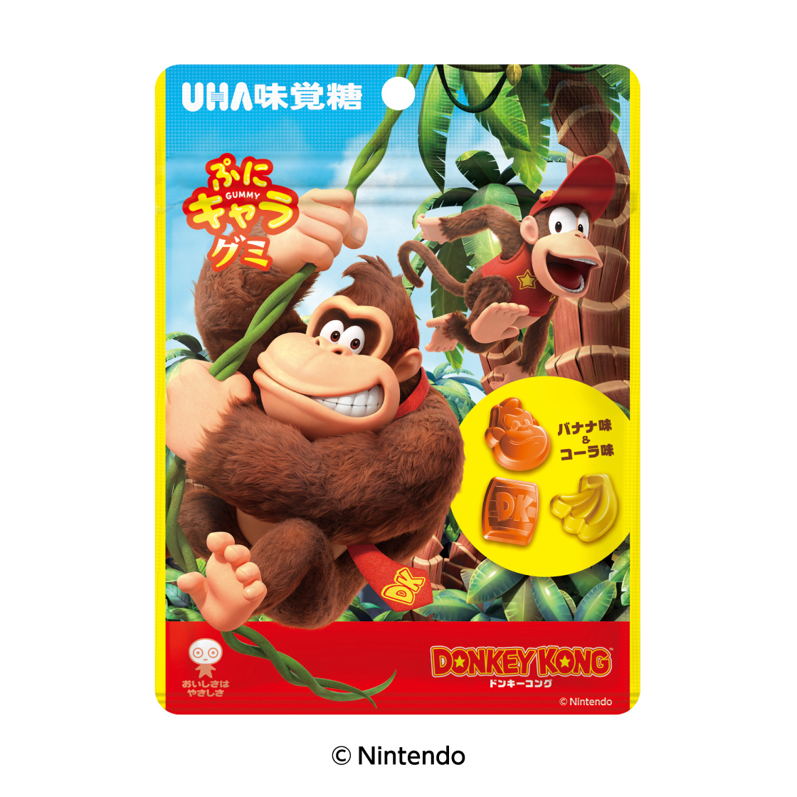 ドンキーコングの顔型とタル型はドリンク系フレーバーの中でも人気の高いコーラ味、バナナ型はグミでは珍しいバナナ味です。
